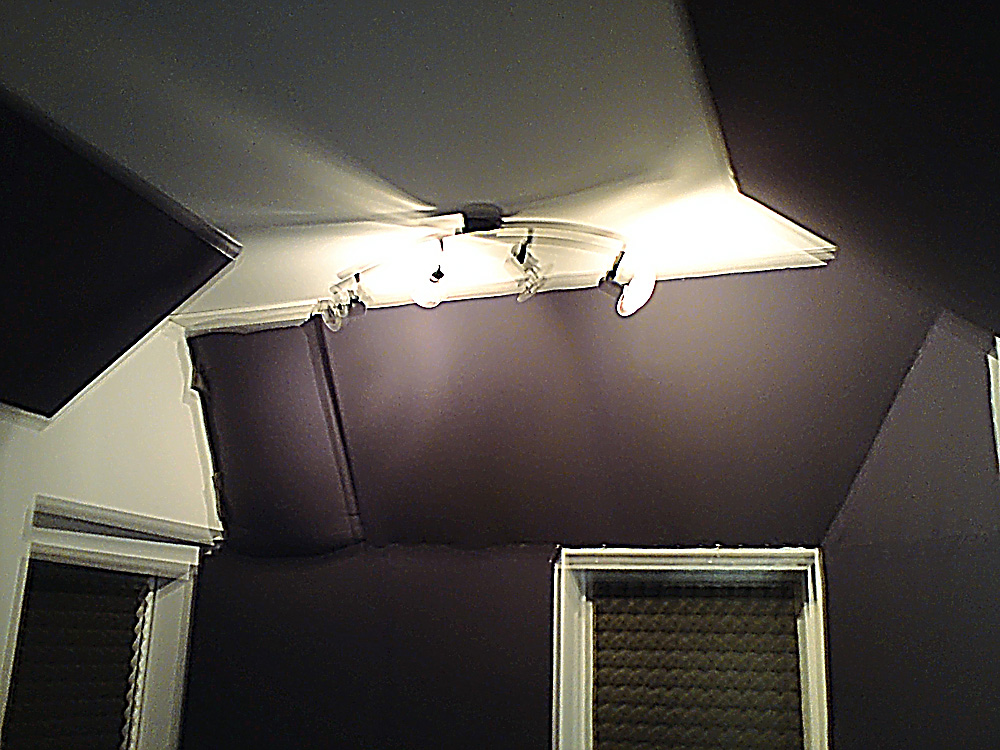 Man erkennt, dass die Eckenabsorber in alle 3 Dimensionen gehen. Aus platztechnischen Gründen nur einer hinten von oben nach unten,