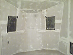 bespannten Superchunks, hinten die fertige Rückwand und die mit Pyramidenschaum beklebten Türen.