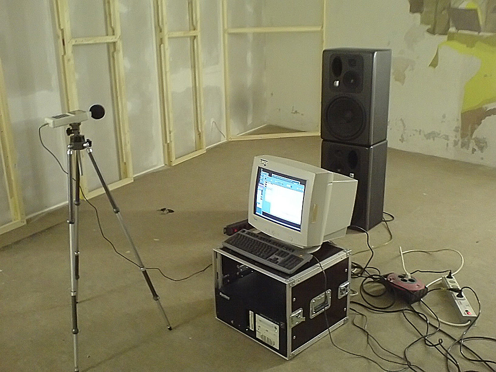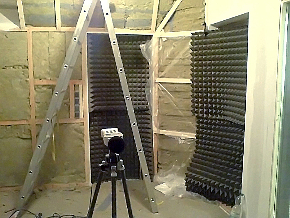 Messung beim Absorberbau Regieraum - Blick zur Vorderwand
