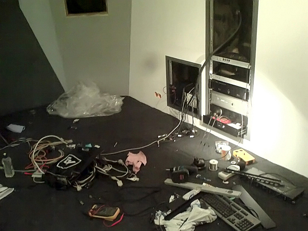 Der Regieraum war nun gemalert und auch der Teppich war verlegt. Nun ging es ans Verkabeln.