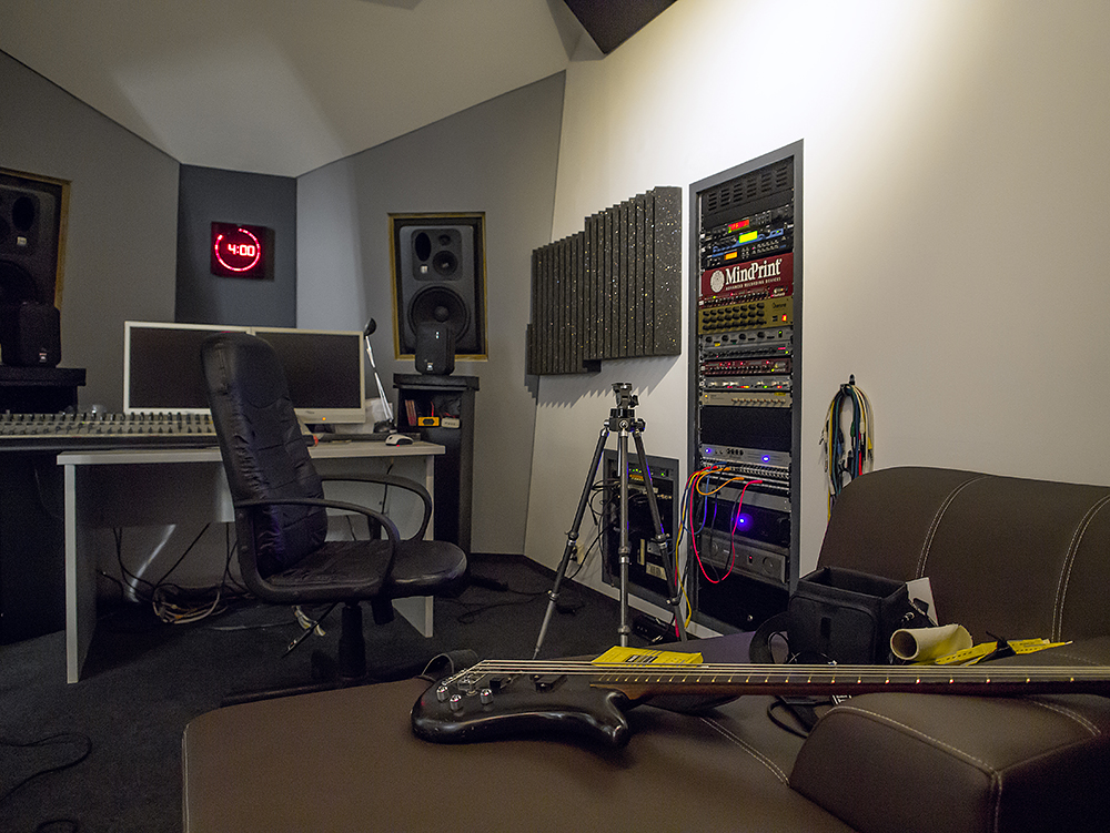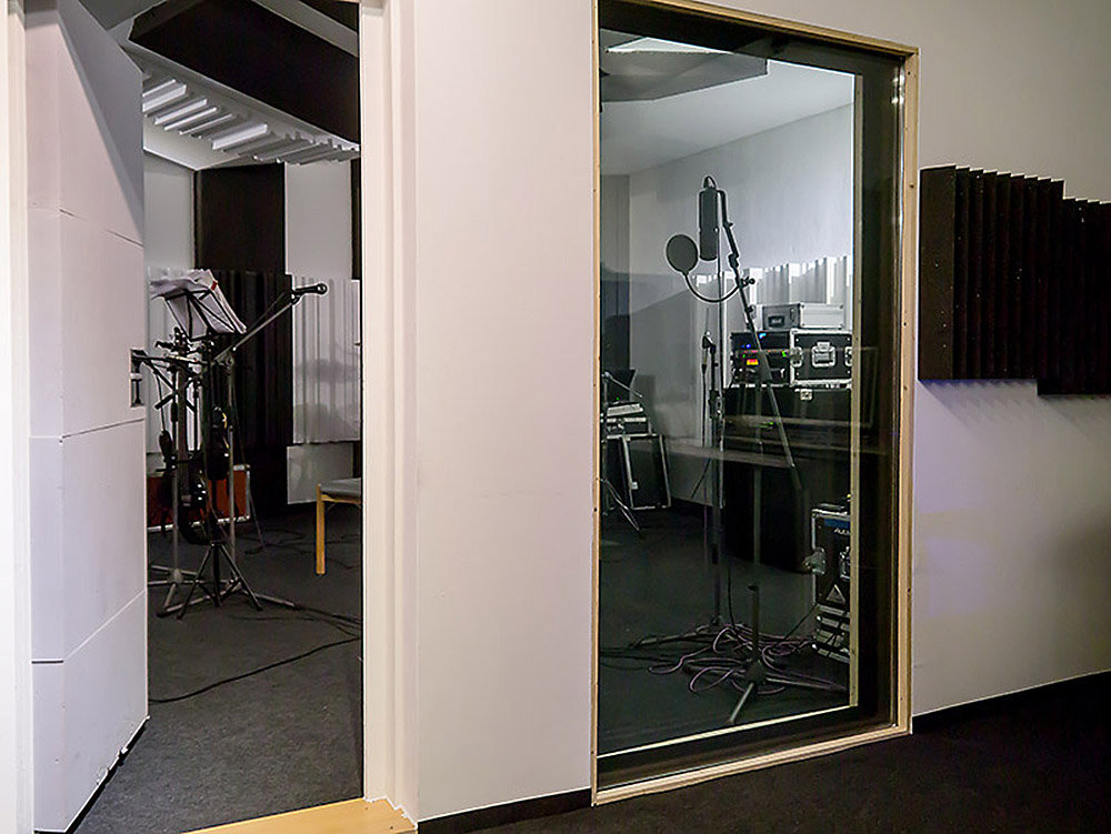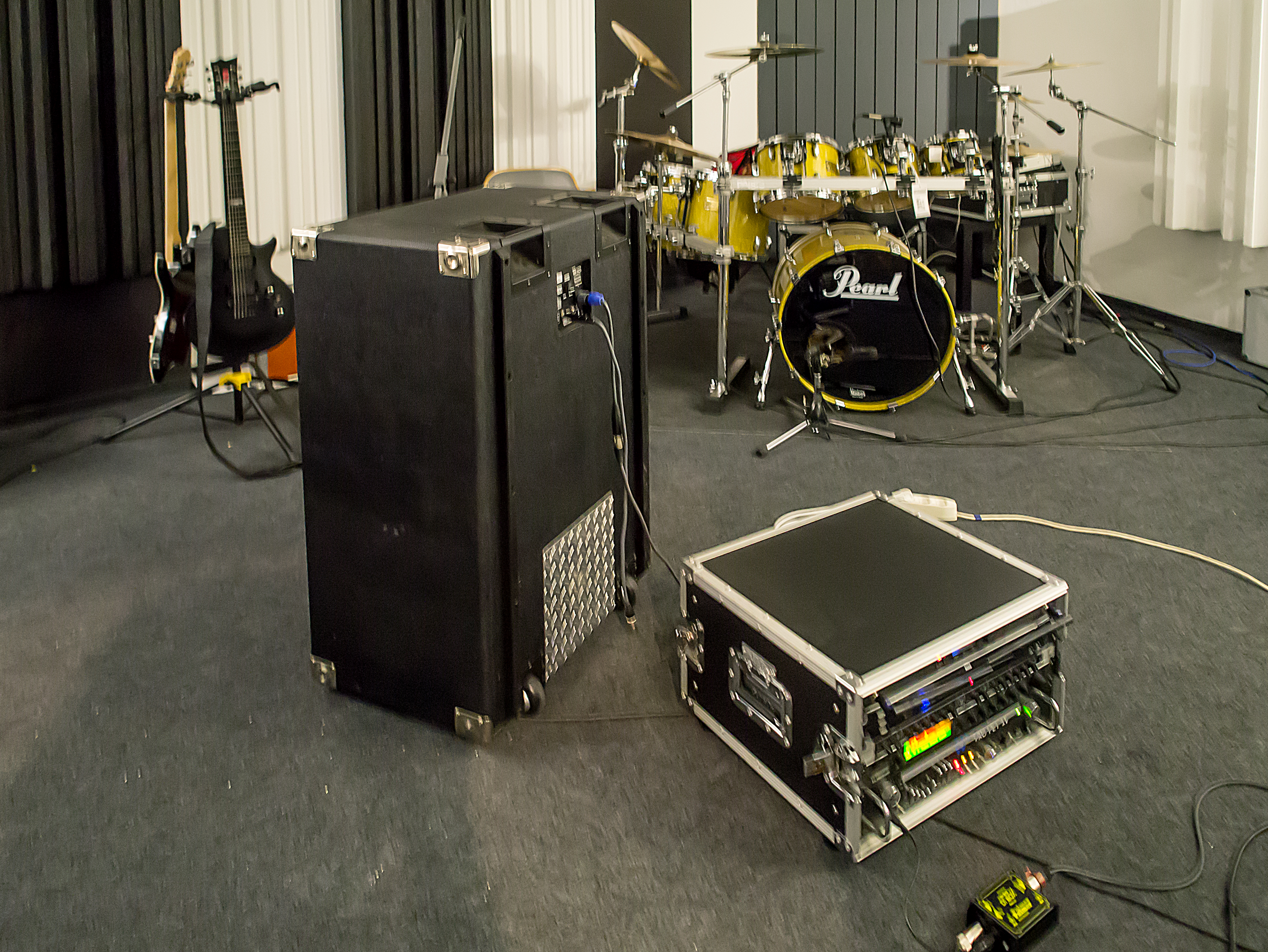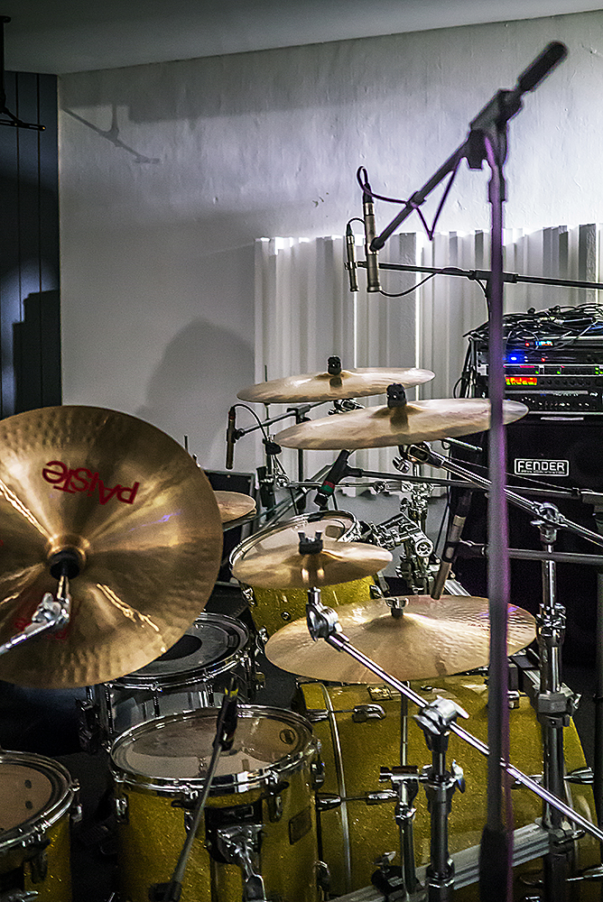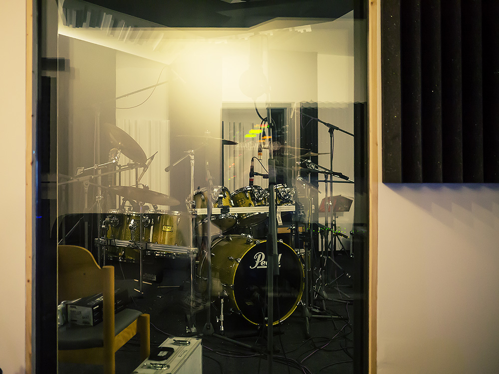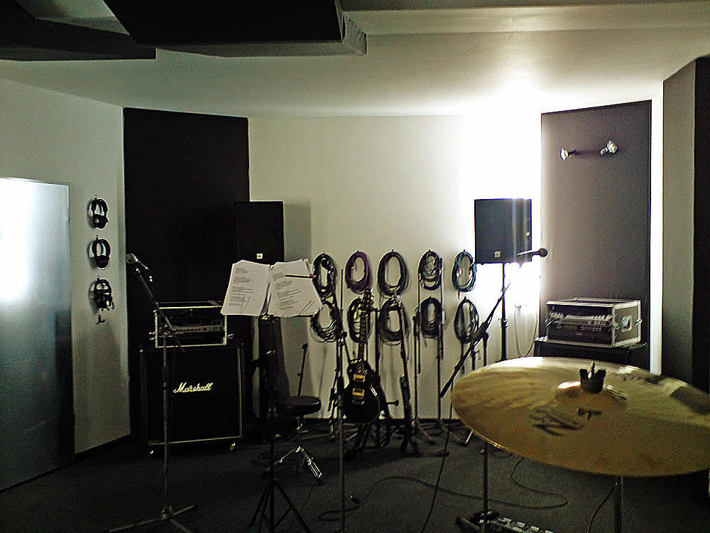 Die Akustik erlaubt sehr gute Aufnahmen von Gesang, Gitarren, Bass und akustischen Instrumenten. Auch für Drums ist unser Raum geeigenet, allerdings könnte dafür Raum da u.U. etwas längere Hallzeiten haben. Aber da der Raum ziemlich linear im Frequenzgang ist und keinerlei Flatterechos aufweisst, kann man hier durchaus auch echte Schlagzeuge sehr gut aufnehmen.